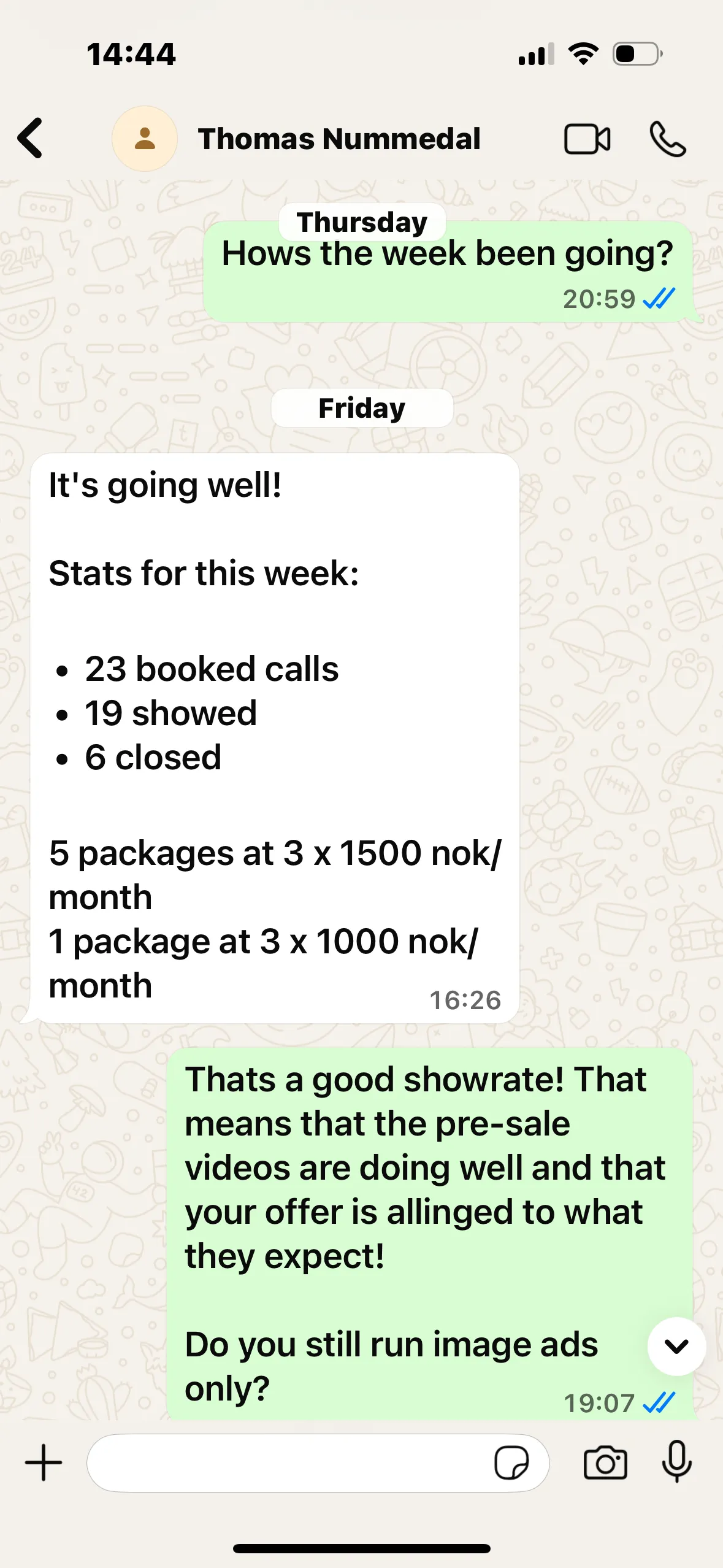 If yes, meet our client Thomas Nummedal. When he joined our mentorship he didnt have a strategy in place to book sales calls on autopilot. Now he finally does and can easily scale from 30K per month and upwards.